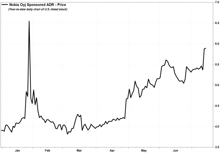 A company statement said management "expects to revise upwards its nokia stock. 2 days ago · nokia (nok) shares rallied 9.5% in the last trading session to close at $5.88.